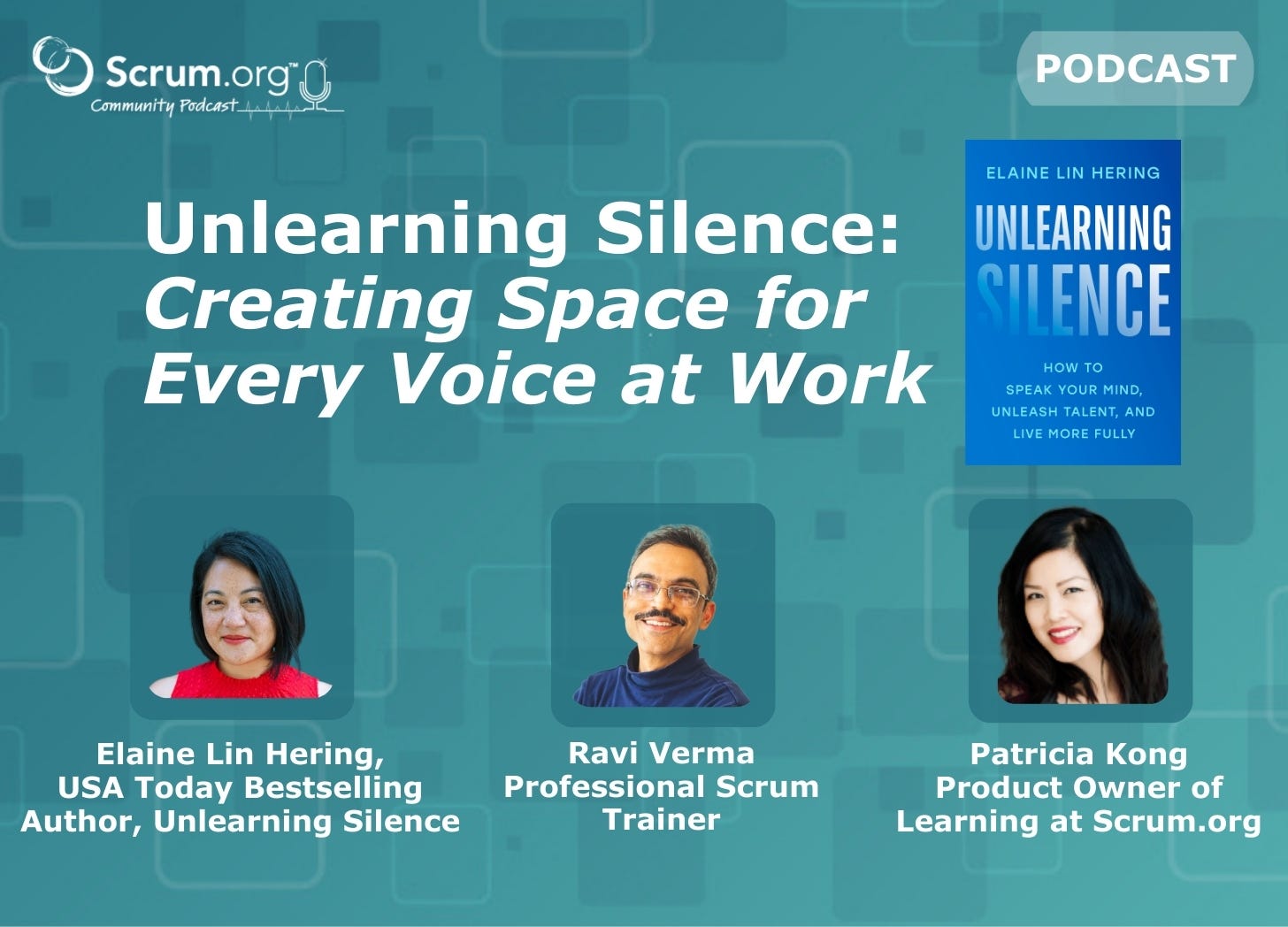 In this recent episode of the Scrum.org Community Podcast, Patricia Kong hosts a discussion with Elaine Lin Hering, author of “Unlearning Silence,” and Ravi Verma, a Professional Scrum Trainer. They examine how workplace culture and cultural norms influence who speaks up and why intentional communication matters.
